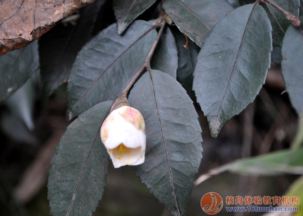 悠長的古道,茂密的竹林,在這樣寒冷的冬天,在古道的路途中還發現了剛剛開放的花朵。周邊深綠色的葉子讓這朵花在冬季顯得更加鮮艷,更加有生命力……