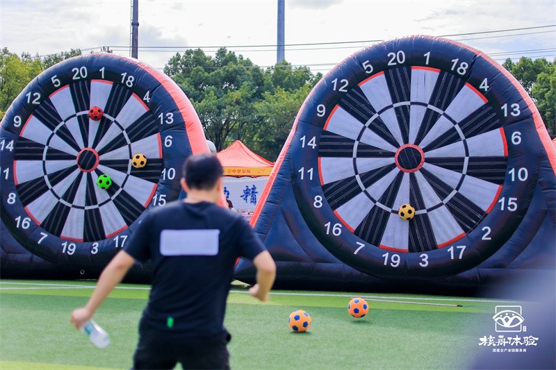 “足球飛鏢”將足球與飛鏢巧妙結(jié)合,參與者既要控制好踢球的力度與方向,