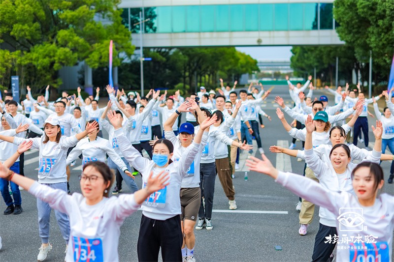 隨后,專業教練帶領大家進行了充分的互動熱身,為接下來的跑步比賽做好了準備。